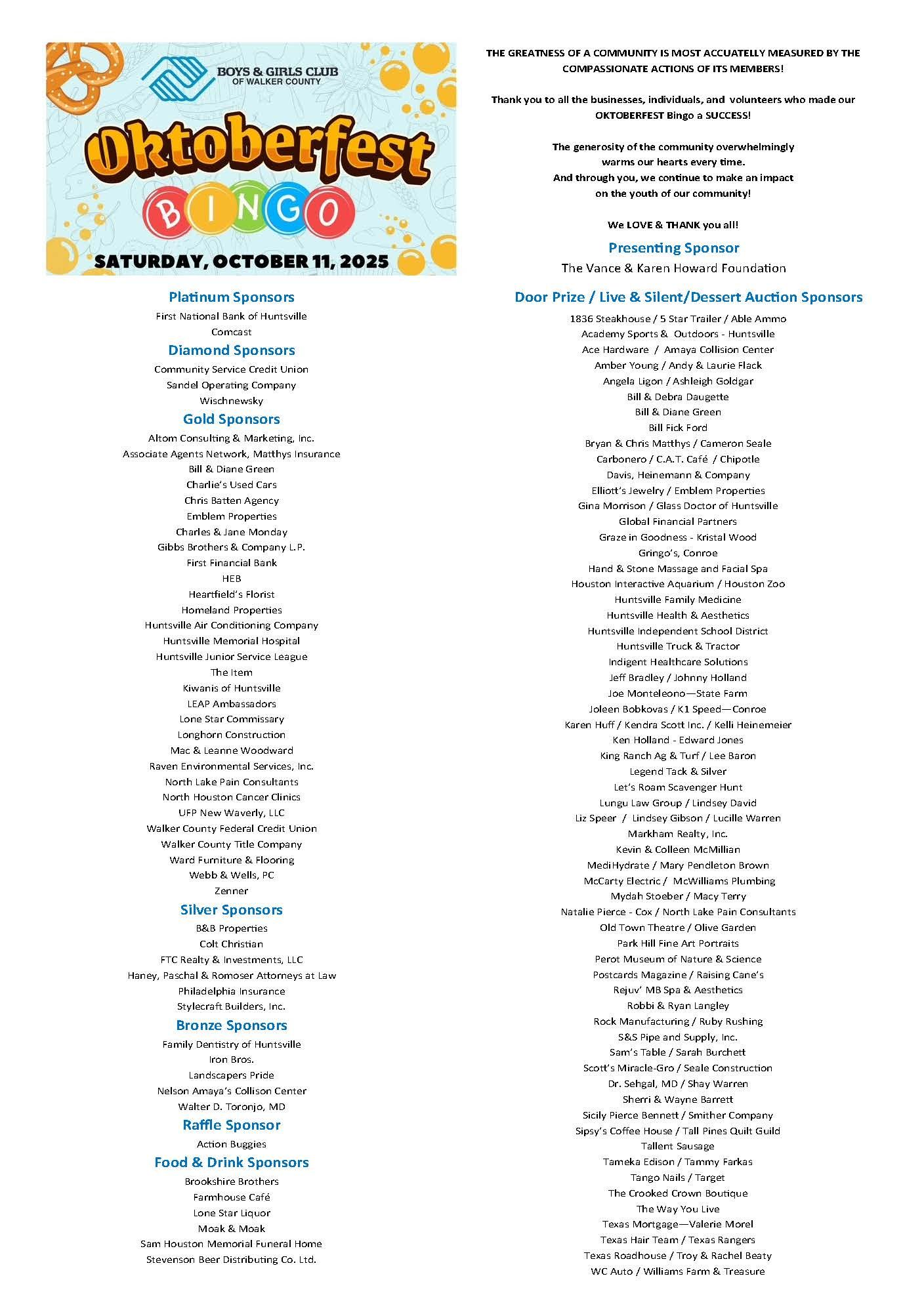 Thank you to Our 2025 Oktoberfest Sponsors & Supporters!